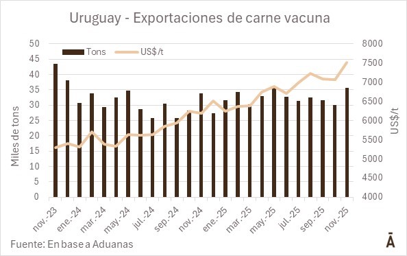 Valor medio de exportación de la carne vacuna fue récord en noviembre