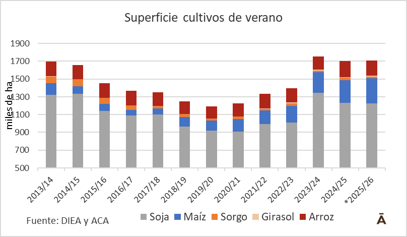 Zafra de verano 2025/26: soja estable y maíz con intención de siembra récord