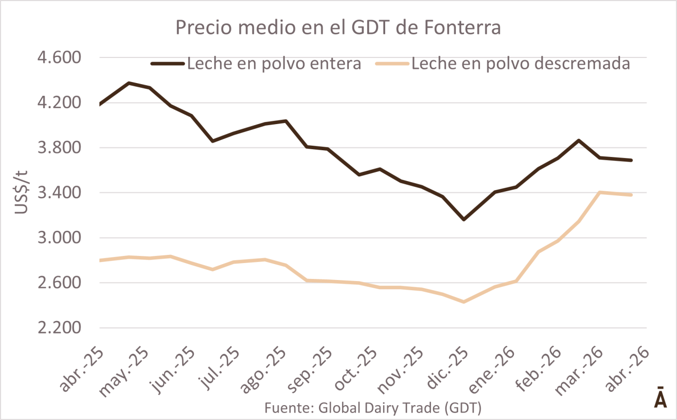 Abril comienza con un nuevo descenso en los lácteos a nivel internacional