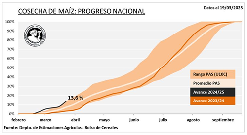 Ya se cosecharon casi 8 millones de toneladas de la cosecha argentina de maíz sobre un total estimado a nivel nacional de 49 millones de toneladas correspondiente a partidas comerciales (es decir, sin considerar el grano de uso propio).