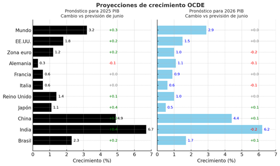 La OCDE advirtió que, pese a la mayor resiliencia mostrada por la economía global en los últimos meses, el mundo sufrirá en 2026 un fuerte impacto derivado de las medidas arancelarias impulsadas por Donald Trump. En sus nuevas proyecciones divulgadas esta semana, el organismo con sede en París mejoró las perspectivas de crecimiento para 2025, destacando que muchas empresas adelantaron importaciones en previsión de tarifas más altas. También señaló el dinamismo de la inversión en inteligencia artificial en Estados Unidos y los estímulos fiscales aplicados en China.