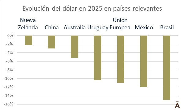 En lo que va del año, el tipo de cambio baja 10,4%. El dólar había cerrado diciembre en $ 44 el año pasado. En Brasil, socio de referencia regional, la depreciación de la moneda fue mayor (-15%).