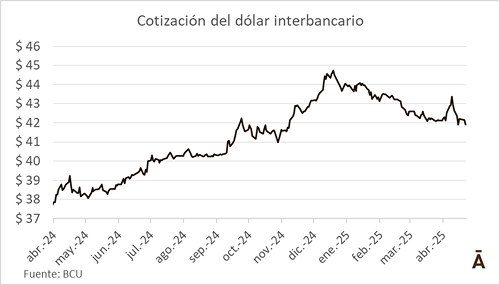 El dólar en Uruguay se debilitó 0,5% este martes en el promedio interbancario versus el peso uruguayo y quedó por debajo de los $ 42, algo que no ocurría desde principios de noviembre. El cierra de la última operación en Bevsa se pactó a $ 41,95. Así el tipo de cambio en Uruguay se deprecia casi 5% en lo que va de 2025 y se encamina a cerrar su cuarto mes consecutivo de descenso en la plaza local. En último año móvil, el dólar está aún 9,4% por encima.