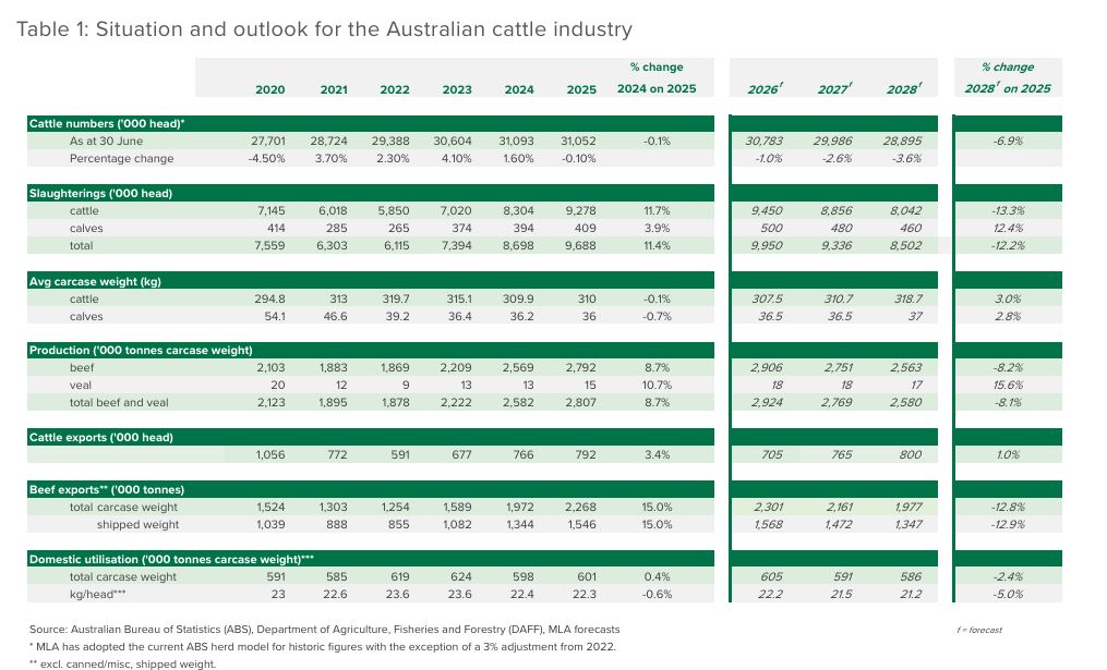 Las exportaciones también marcarían un nuevo máximo, con 2,3 millones de toneladas carcasa, impulsadas por la escasez global de carne vacuna, especialmente en EEUU. Este factor sigue siendo clave para absorber la elevada producción australiana.