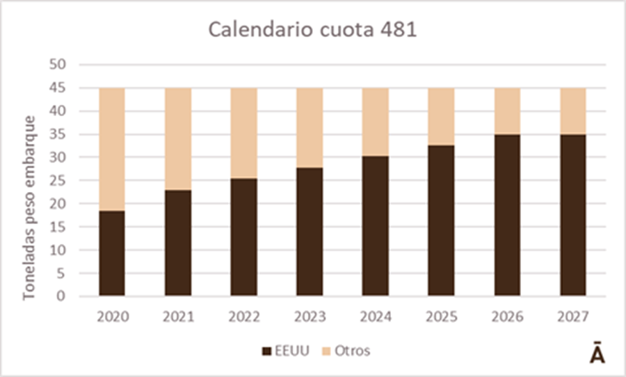 A partir de 2026 los volúmenes para cada una de las partes quedan estables en los actuales niveles luego del cronograma de disminución del cupo del que podía participar terceros países y consecuente aumento del volumen exclusivo de EEUU que comenzó en 2020. El volumen total entre ambas partes siempre fue de 45.000 toneladas anuales.