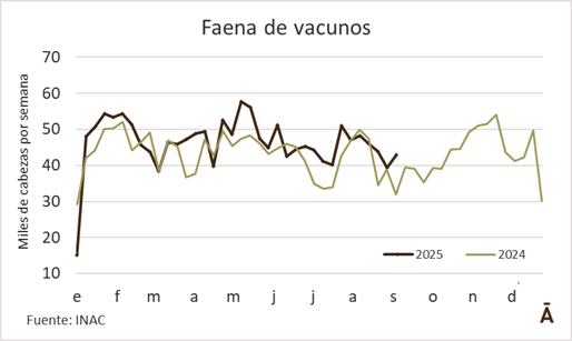 La composición de la faena demuestra con claridad que una porción significativa de la actividad industrial se desarrolla con animales que llegan desde corrales de engorde. La opinión de los operadores es unánime en cuanto a que la oferta de animales terminados a pasto es mínima; sin embargo, la faena fue unas 10 mil cabezas superior a la de la misma semana del año pasado, con aumento significativo de todas las categorías.