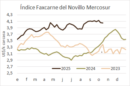 El tipo de cambio en Argentina está siendo un factor de volatilidad en los precios de la hacienda en el país. Sin embargo, esta semana fue la razón por la que el Índice WBR del Novillo Mercosur perdió solo 1 centavo a US$ 4,05 el kilo carcasa.