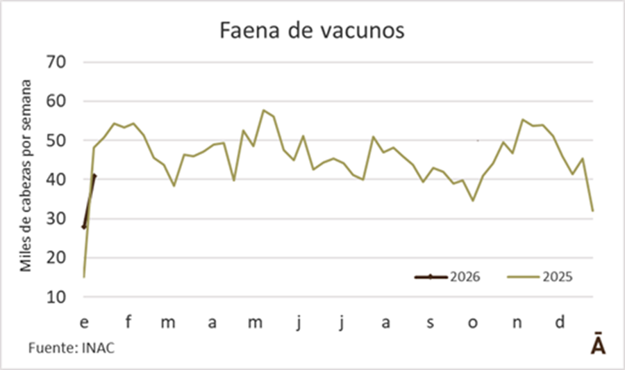 Tras las dos semanas impactadas por los feriados de fin de año, la faena de vacunos superó las 40 mil cabezas, pero sin llegar a alcanzar los niveles previos.