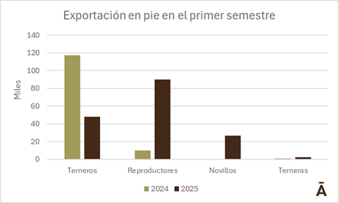 La gran complicación que sufrió la industria frigorífica en 2019/20 por la muy intensa salida de terneros en pie en los dos años anteriores no parece vaya a ser el caso en los dos próximos años. Por más que la exportación de vacunos en pie en 2024/25 fue la segunda más alta de la historia con 387 mil cabezas, los terneros de la generación 2024 embarcados fueron pocos, ya que la corriente comercial tuvo un peso relativo mucho mayor de vientres, fundamentalmente vaquillonas, tanto de razas carniceras como lecheras.