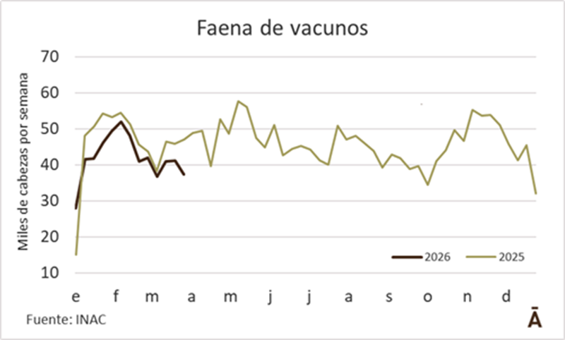 Con la suspensión de actividades de varias plantas y la reducción de otras, la faena de vacunos en la semana culminada el 28 de marzo se contrajo, algo que era previsible considerando la situación de la demanda.