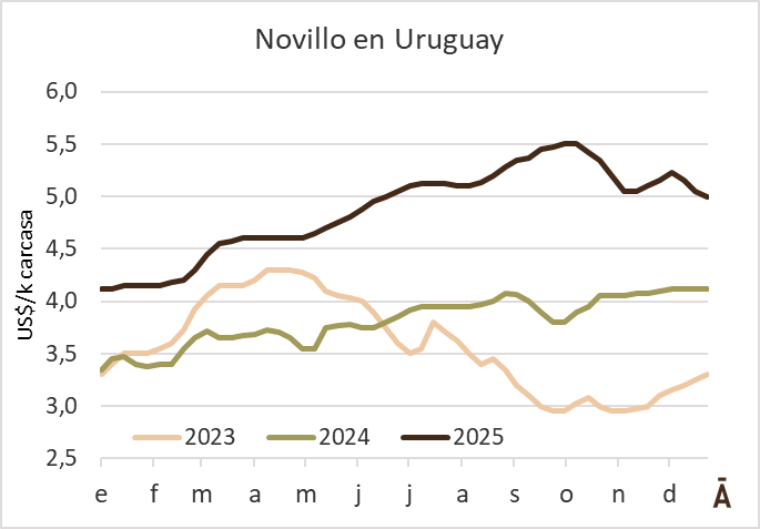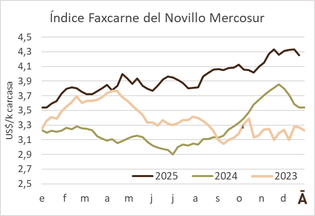 Los precios de la hacienda volvieron a ajustar a la baja durante la última semana al 20 de diciembre. Según la ACG, “con moderada concreción de negocios propios de la época y una demanda que no presiona en la compra”, se dio un nuevo “ajuste de valores”.