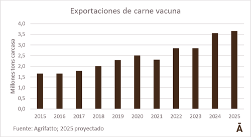 A pesar de la muy alta producción de carne durante el primer trimestre del año, se mantienen las expectativas de una reversión del ciclo ganadero en Brasil, lo que hará caer la faena y la producción en los venideros meses de 2025. De acuerdo con las proyecciones de la consultora Agrifatto para el año, Brasil producirá 10,12 millones de toneladas de carne vacuna, 1% menos que en 2024, como consecuencia de una caída de 0,9% de la faena a 38,83 millones de cabezas.
