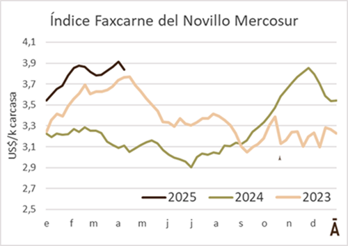 Las exportaciones de carne vacuna a China comenzaron 2025 en niveles significativamente inferiores a los del año pasado. Se estima que en el primer trimestre del corriente se embarcaron a China unas 575 mil toneladas de carne vacuna fresca, cerca de 80 mil toneladas menos que en el mismo período de 2024.