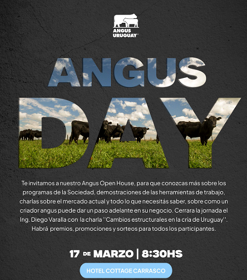 La Sociedad de Criadores de Aberdeen Angus del Uruguay (SCAAU), suma una nueva actividad en su agenda: ANGUS DAY. Este evento se llevará a cabo el próximo 17 de marzo en el Hotel Cottage Carrasco, a las 8.30 horas.