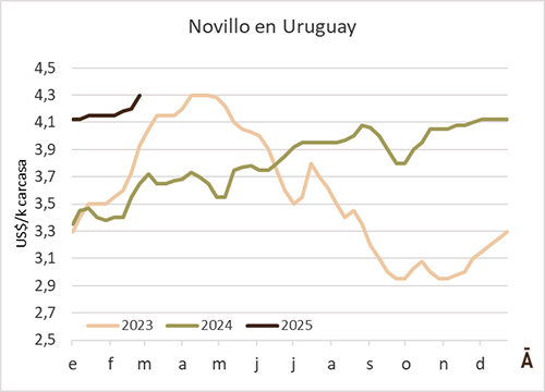 Los precios de la hacienda en Uruguay están en alza para todas las categorías, impulsados por una firme demanda y por condiciones forrajeras que permiten a la oferta manejarse con soltura.