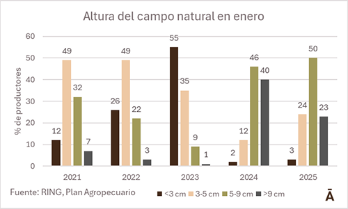El rodeo de cría está en una favorable condición corporal que permite ser optimistas en cuanto a que se logrará una elevada tasa de preñez en el entore que está terminando. La encuesta que realiza el Instituto Plan Agropecuario (IPA) da cuenta de una altura de los campos naturales suficiente como para sostener una adecuada alimentación del rodeo de cría.