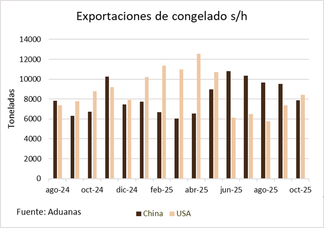 Aunque se produjo un descenso significativo en los volúmenes efectivamente embarcados en octubre debido al conflicto sindical en la terminal TCP del puerto de Montevideo, las solicitudes de exportación informadas por Aduanas dan cuenta de un ritmo fluido en las ventas al exterior de carne vacuna, solo levemente por debajo del total del mes anterior.