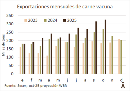 Las exportaciones brasileñas de carne vacuna mantuvieron un intenso ritmo en la cuarta semana de octubre y el mes se encamina a superar nuevamente todos los registros previos, lo que se daría por tercera vez en lo que va de 2025.
