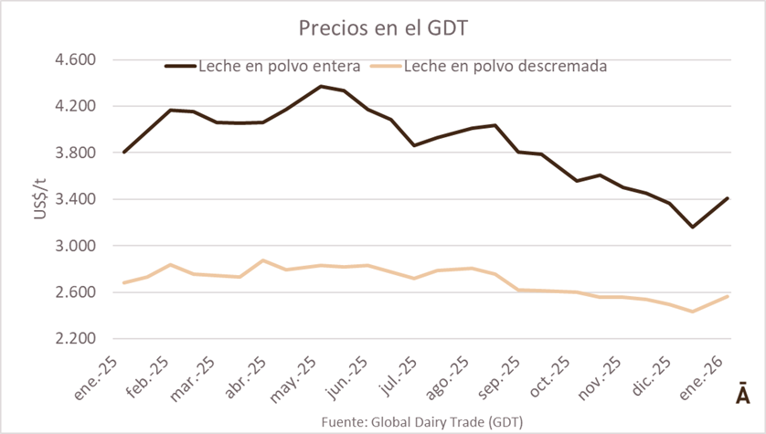 La primera subasta de 2026 del sistema Global Dairy Trade (GDT) tradicional de Fonterra trajo buenas noticias para los lácteos en el día de Reyes, tras una prolongada racha bajista que preocupaba a exportadores como Uruguay.