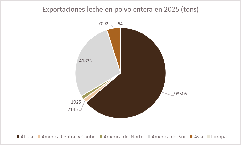 El continente africano ha sido el destino de casi dos de cada tres kilos de leche en polvo entera exportada por Uruguay en lo que va de este año.
