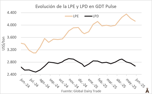 Este martes 10 de junio se realizó la primera venta del sistema GDT Pulse, con un nuevo descenso en los valores de ambas leches en polvo. La subasta 81 de Global Dairy Trade (GDT) Pulse, registró un descenso del 2,1% para la leche en polvo entera (LPD) y una caída del 3,5% para la leche en polvo descremada (LPD).