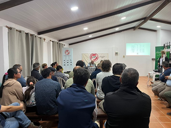 La Sociedad de Productores de Leche de Florida (SPLF) organizó en la Fomento de la Colonia 33, en la zona de la sede de Chamizo, una reunión con socios de la gremial. “Es una zona donde se está dando mucho recambio generacional. Hay muchos hijos de colonos que se están haciendo cargo de los tambos y que utilizan los distintos servicios de la SPLF como el campo de recría, maquinaria o servicios administrativos”, explicó a La Lechera el gerente de la SPLF, Ing. Agr. Andrés Barreira. En la reunión se contó con la presencia de buena parte de la directiva de la SPLF, funcionarios de distintas áreas de la Sociedad, del director de Conaprole, Ing. AGR. Juan Parra, y del regional de Conaprole de la cooperativa, Med. Vet. Sebastián Pagliano.