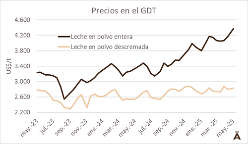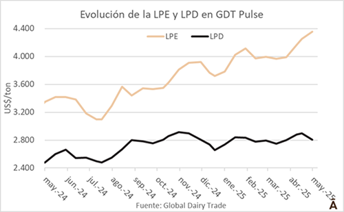 Este martes 13 de mayo se realizó la primera venta de leche en polvo descremada ofertada por la europea Arla en el sistema GDT Pulse, lo que hizo caer los valores de este producto, frente a una leche en polvo entera que sigue con precios históricos. La subasta 78 de Global Dairy Trade (GDT) Pulse, registró un aumento del 3,1% para la leche en polvo entera (LPD) y una caída del 3,1% para la leche en polvo descremada (LPD).