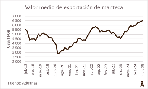 https://tardaguila.uy/images/firmas/rafa.pngEn un contexto de firmeza para los productos lácteos en el mercado internacional, sobresalen los valores alcanzados por la manteca. El valor medio de exportación de la manteca en marzo, de acuerdo con datos de Aduanas, fue de US$/t 6.493, el más alto de la historia.