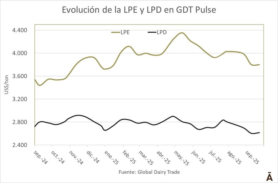 La subasta 89 de Global Dairy Trade (GDT) Pulse mostró un leve descenso en la cotización promedio de la leche en polvo entera (LPE), en tanto que la leche en polvo descremada (LPD) registró una suba en sus cotizaciones, revirtiendo tres bajas consecutivas en la venta de este sistema.