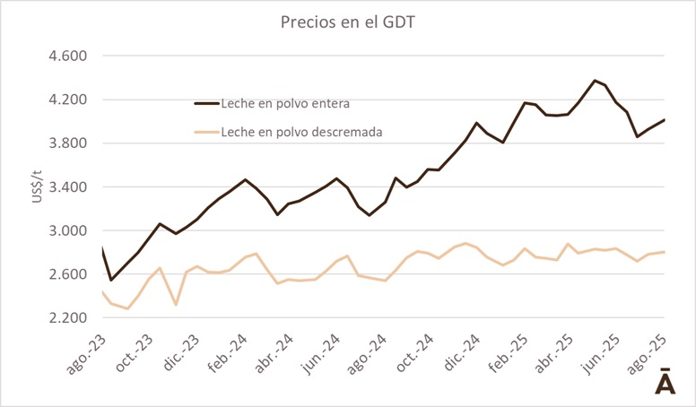 La licitación 386 de la plataforma electrónica Global Dairy Trade (GDT), la segunda del mes de agosto, los precios de los lácteos registraron bajas en el promedio general, así como también en los quesos, la manteca y la leche en polvo descremada, solamente la leche en polvo entera mantuvo su corriente alcista, a pesar que la variación fue mínima respecto a la venta previa.