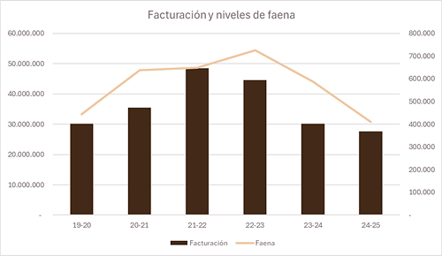 No siempre menos, es más. En el caso del cordero, la menor faena y la suba de precios de los últimos tres meses podrían generar una visión diferente de lo que ha ocurrido en los tres trimestres del año agrícola-ganadero 2024-2025, donde si bien existe un descenso del 30% en la actividad industrial, también hay una merma en la facturación del 8%.