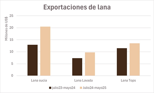 Las exportaciones de lana registraron un aumento del 38% en volumen en el período julio 2024-mayo 2025, correspondiente al actual año agrícola-ganadero, alcanzando un total de 43,8 millones de kilos colocados en el exterior. Este repunte se reflejó también en el incremento de la facturación, que creció 33% interanual, con un ingreso total de US$ 156,4 millones.