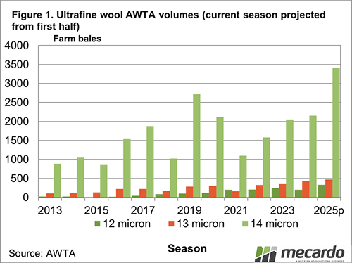 La producción australiana de lana Merino ultrafina, específicamente en las categorías de 12 a 14 micrones, alcanzó niveles récord en la zafra actual, impulsada por condiciones estacionales secas que favorecieron la generación de fibras más finas.