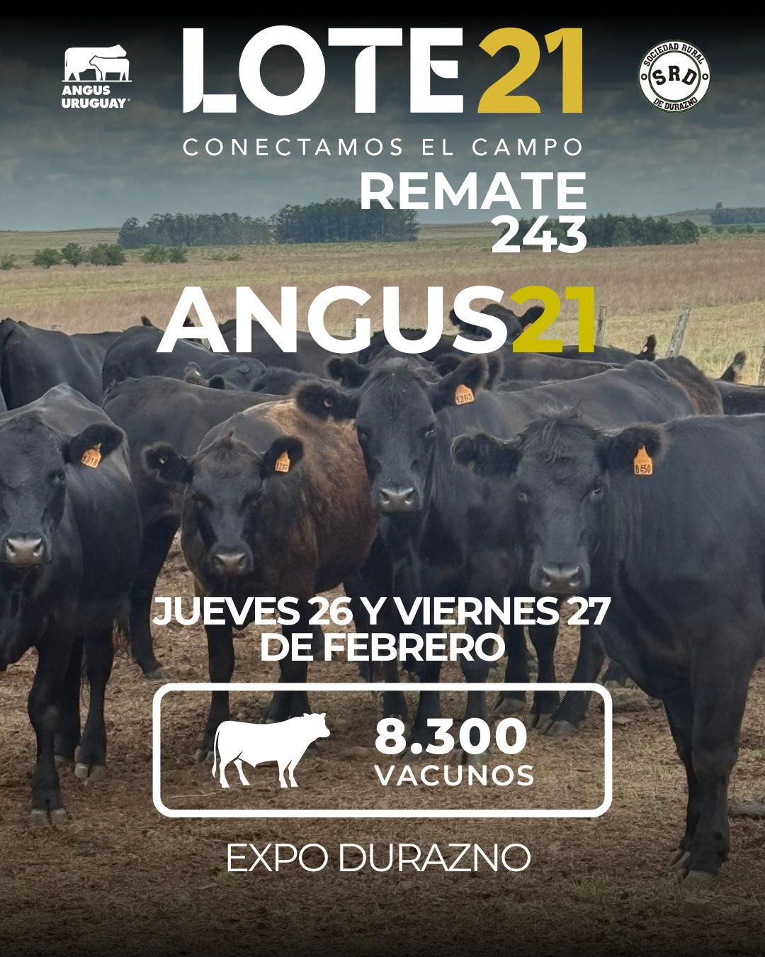 Con un mercado del ganado gordo firme y un escenario internacional dinámico, Lote 21 realizará este miércoles 11 de febrero su remate 242, desde la Escuela de Alta Gastronomía UTU de Punta del Este, a partir de la hora 9.