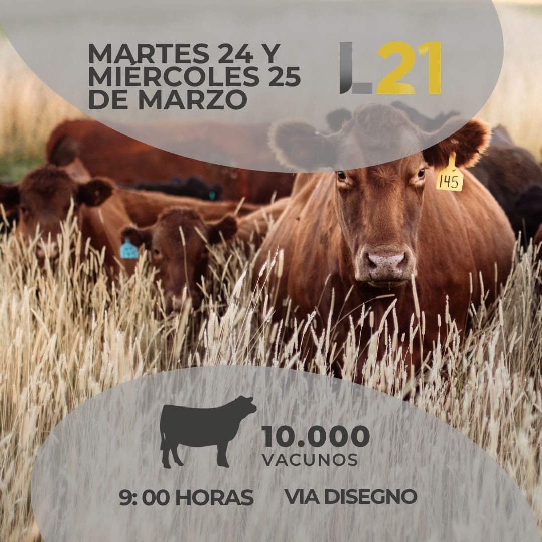 El consorcio Lote 21 realizará este martes 24 y miércoles 25 de marzo su remate 245, con una oferta de 10 mil vacunos, en un mercado que busca su nuevo nivel de equilibrio.