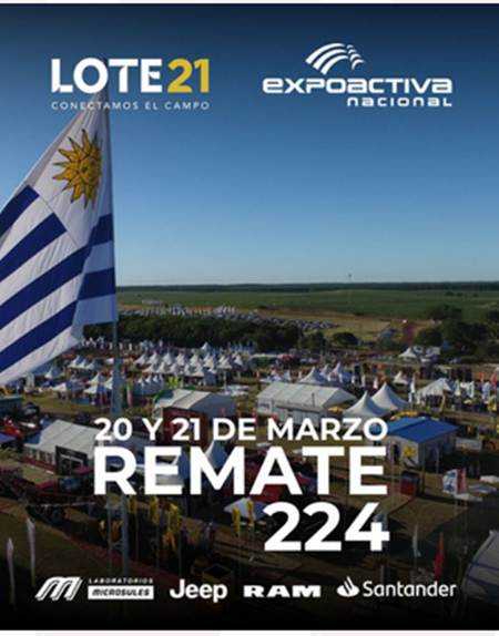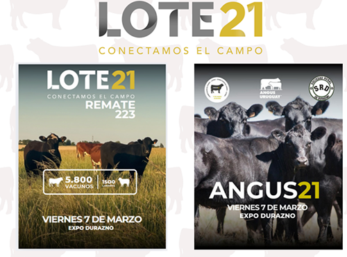 Este viernes 7 de marzo, en el marco de la Expo Durazno, el consorcio por pantalla Lote 21 llevará a cabo su remate ANGUS21. Se estarán ofreciendo 5.800 vacunos y 1.500 lanares desde las 9 am. Con sanidad Microsules y financiación Santander, se llevará a cabo la edición 223°. La actividad se transmitirá a través de VTV Rural y la App, en la misma pueden estar usando además del Pique21, las distintas herramientas como calculo de flete, pique en línea para no perderse ningún lote y calculadora de Lote para sus créditos en línea.