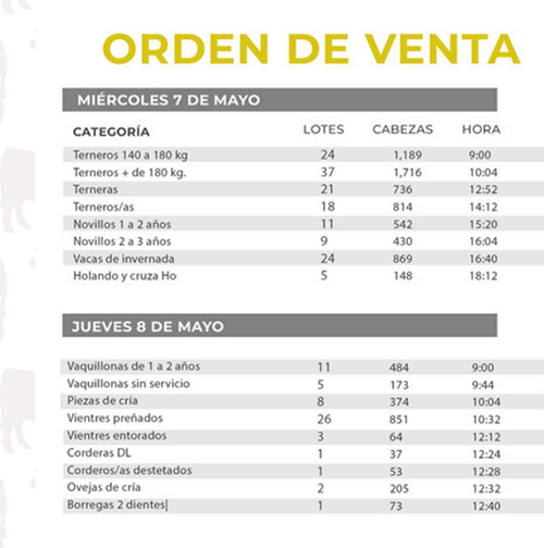 Desde este miércoles 7 y jueves 8 de mayo, Lote 21 estará realizando su remate 227 desde el Club Fuerza Área de Montevideo. Se estarán ofreciendo 8.500 vacunos y 500 lanares desde las 9 AM con sanidad Microsules y financiación Santander. Durante el primer día de actividad, se destaca una abultada oferta de terneros/as.