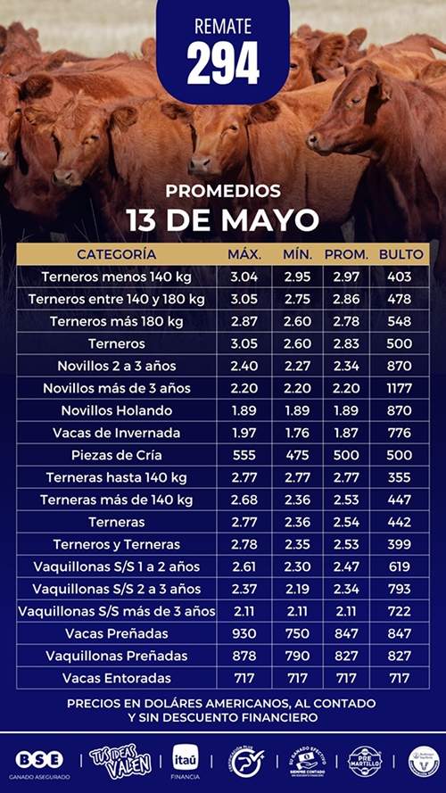 Con un 84% de ventas, el consorcio Pantalla Uruguay tuvo este martes 13 su remate 294 con la comercialización de 3.724 vacunos. Los terneros hicieron un promedio de US$ 2,83 por kg en pie (US$ 502 al bulto), en baja de 0,4% versus el remate anterior.