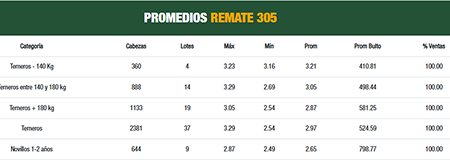 El consorcio Plaza Rural tuvo este martes su primer día de actividad del remate 305 con una colocación del 100% en la escalera de terneros, novillos y vacas de invernada.