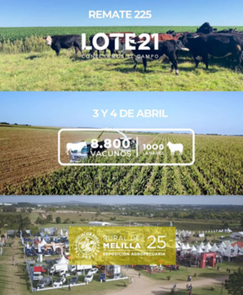 El sector agropecuario es una red de rubros que se complementan y enriquecen mutuamente. Por eso, Lote 21 estará presente, por primera vez, en Expo Melilla con su remate 225 este jueves y viernes. Se estarán ofreciendo 8.800 vacunos y 1.000 lanares desde las 9 am con sanidad Microsules y financiación Santander.