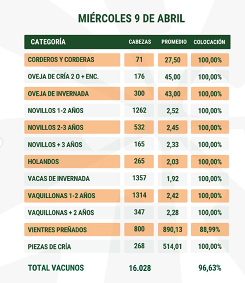 El consorcio Plaza Rural cerro este miércoles su remate 302 con la venta de más de 16 mil animales y un porcentaje de colocación del 96,6%.
