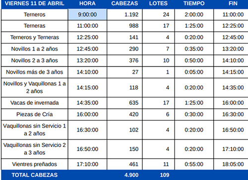El consorcio Plaza Rural tuvo este martes 8 su primer día de actividad del remate 302 con un porcentaje de colocación por encima del 95%. La categoría más numerosa, los terneros (6.640 cabezas), hicieron un promedio de US$ 2,94 por kg (US$ 544 al bulto), mientras que las 2.403 terneras hicieron US$ 2,61 por kg de promedio con 100% de ventas.